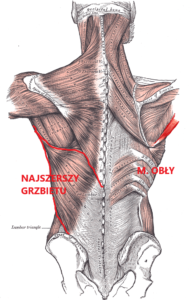 Tym bardziej, że w tej okolicy znajdują się inne, napięte struktury mięśniowe, jak np. mięsień podgrzebieniowy, podłopatkowy, kruczo-ramienny czy nawet piersiowy większy, z którym najszerszy grzbietu współpracuje przy ruchu ramienia…